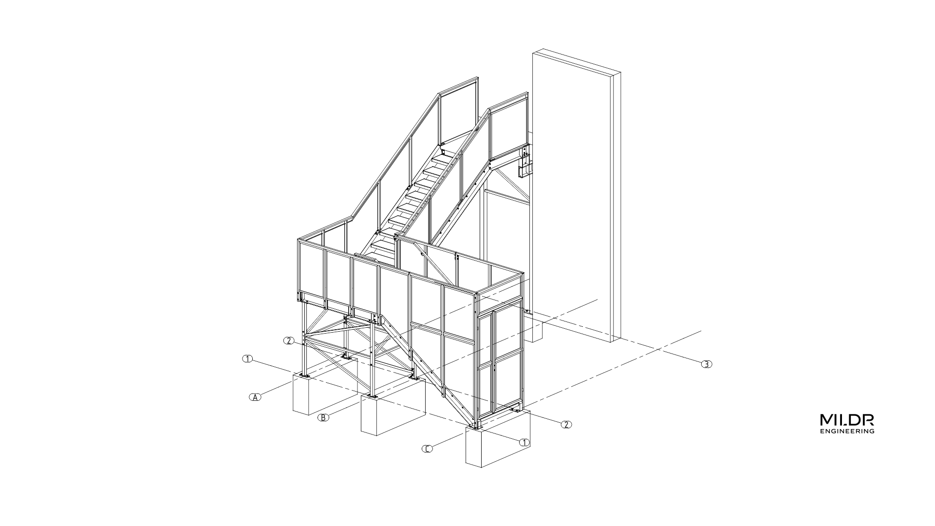 Pro novostavbu přístupového schodiště ke Galerii Přerov jsme zpracovali kompletní projektovou dokumentaci od studie až po výrobní dokumentaci. Projekt zahrnoval statické posouzení ocelových konstrukcí, vypracování technické zprávy a detailní výrobní a montážní dokumentaci. Konstrukce byla navržena dle požadavků třídy EXC2, včetně všech zámečnických detailů.
